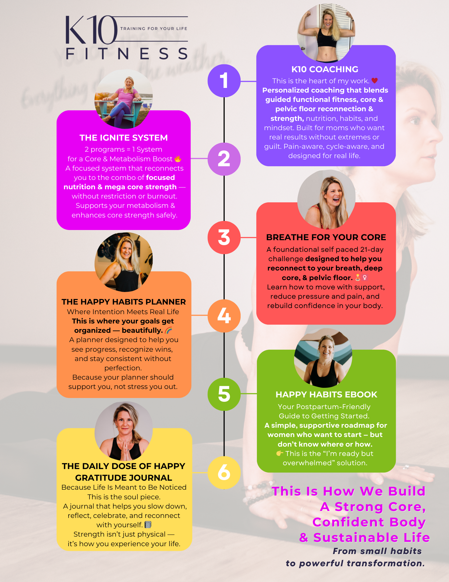 Stop feeling stuck, frustrated and confused on how to get started on your fitness and get the coach and cheerleader you need to show you exactly how to get a strong core & pelvic floor and reach all your goals! -